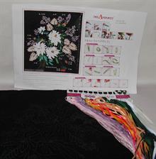Compleet pakket met garen, linten, naalden, kussensloop en werkomschrijving.