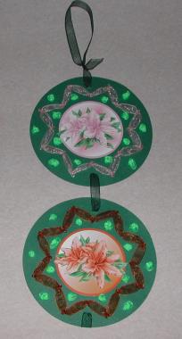 Pakket bestaat uit: 1 vel karton, 1 knipvel, prikmal, werkbeschrijving, foamtape, lint, garen, kraaltjes en naald.