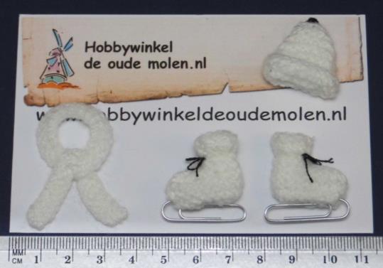 muts 25 x 25 mm, das 30 x 40 mm, schaats 26 x 30 mm