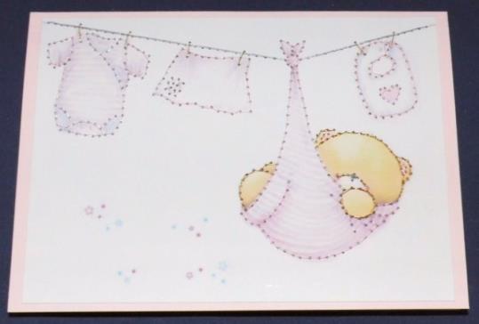 Compleet pakket met kaart + envelop, kaartje met patroon + werkbeschrijving, borduurgaren + naald.