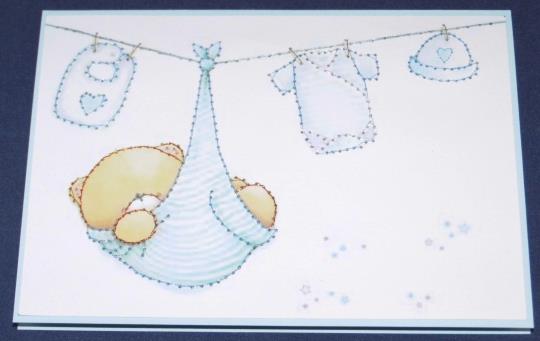 Compleet pakket met kaart + envelop, kaartje met patroon + werkbeschrijving, borduurgaren + naald.