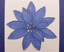 Compleet pakketje met kaartje, kaartje met patroon,           werkbeschrijving, borduurgaren en naald.