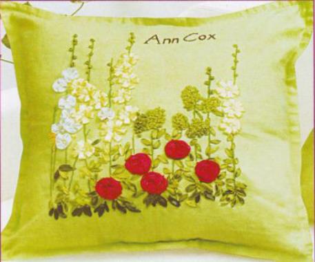 Compleet pakket met garen, linten, naalden, werkomschrijving en kussensloop.