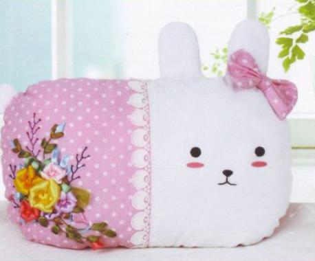 Compleet pakket met garen, linten, naalden, werkomschrijving en kussensloop.
