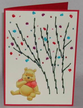 Pakket bestaat uit: 2 vellen karton, 1 knipvel, prikmal,       werkbeschrijving, foamtape, lint, garen, kraaltjes, pailletten                        en naald.