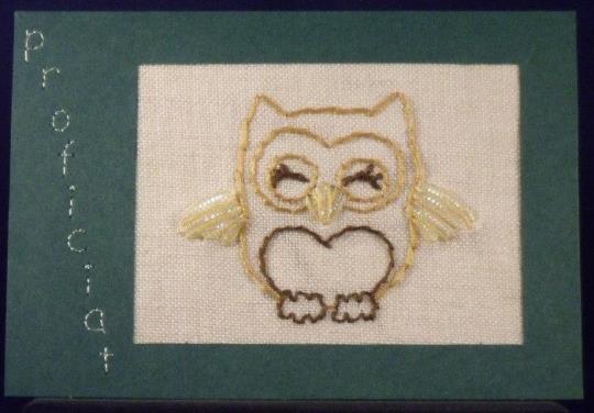 Kaart met uil. U kunt zelf de tekst bepalen die u erop borduurt.