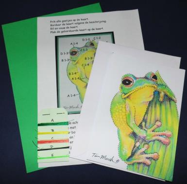 Compleet pakket met kaart + envelop, kaartje met patroon + werkbeschrijving, borduurgaren + naald.