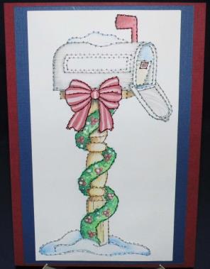 Compleet pakket met kaart + envelop, kaartje met patroon + werkbeschrijving, borduurgaren + naald.